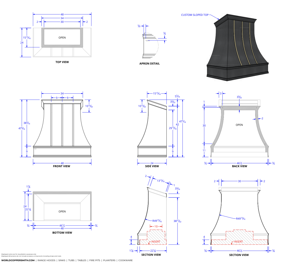 This is where working with CopperSmith can make life a lot easier for a homeowner or designer. For us, it was simple enough to just work with Jennifer to adjust the top of the hood to make sure it sits flush with the angle of the ceiling. Just like that, the problem was solved with custom kitchen ventilation, and she had a hood that was purpose-built to land in that spot.