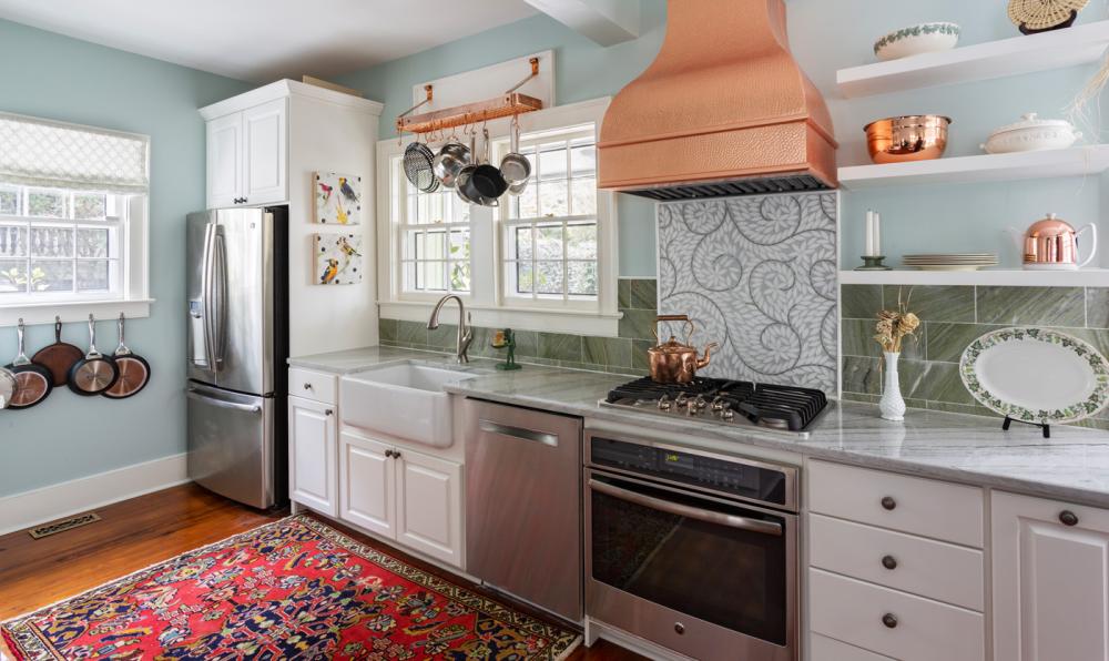 In many ways, this is a traditional Southern kitchen. It has the muted tones, the detailed tile work, the open shelving, and more. It would have fit in just about any era throughout the history of this region of the United States, yet it isn’t stuck in the past in a way that makes it hard to use.