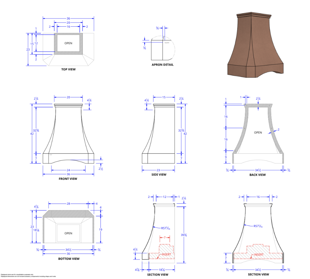 CopperSmith leans into full customization because we know that’s the only way for our customers to truly get exactly what they need without any compromise. Everything from the height and width of the piece to the gauge of the metal, the depth of the hood, and the fan insert was selected intentionally with this kitchen in mind.
